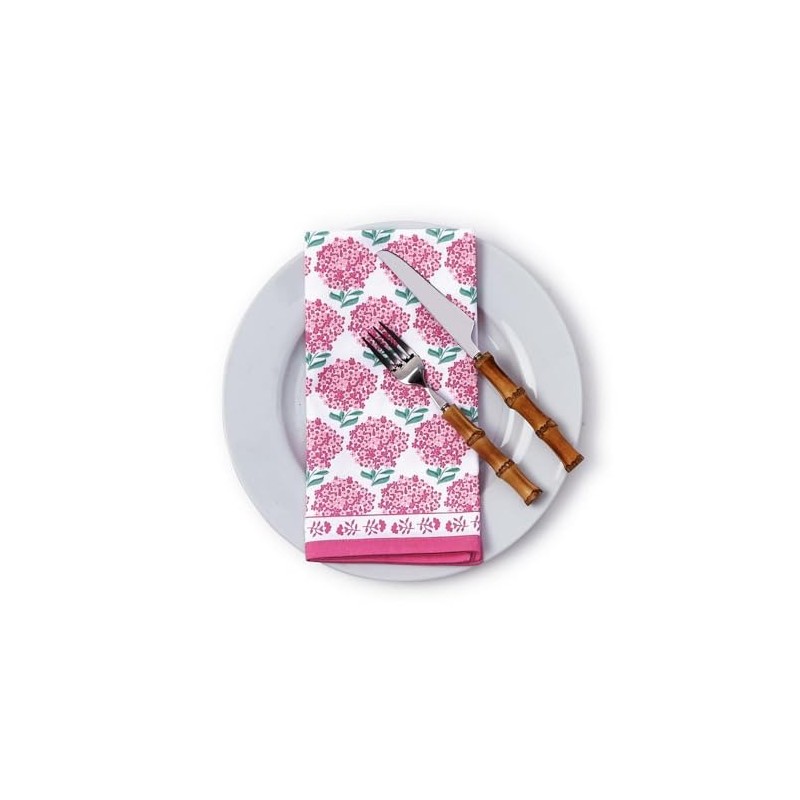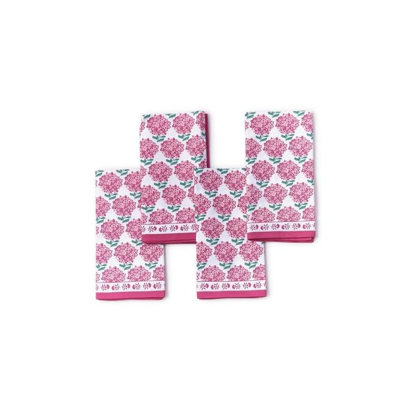 Two's Company Pink Hydrangea Cotton Cloth Napkins, 4-PC Washable Reusable Fab...