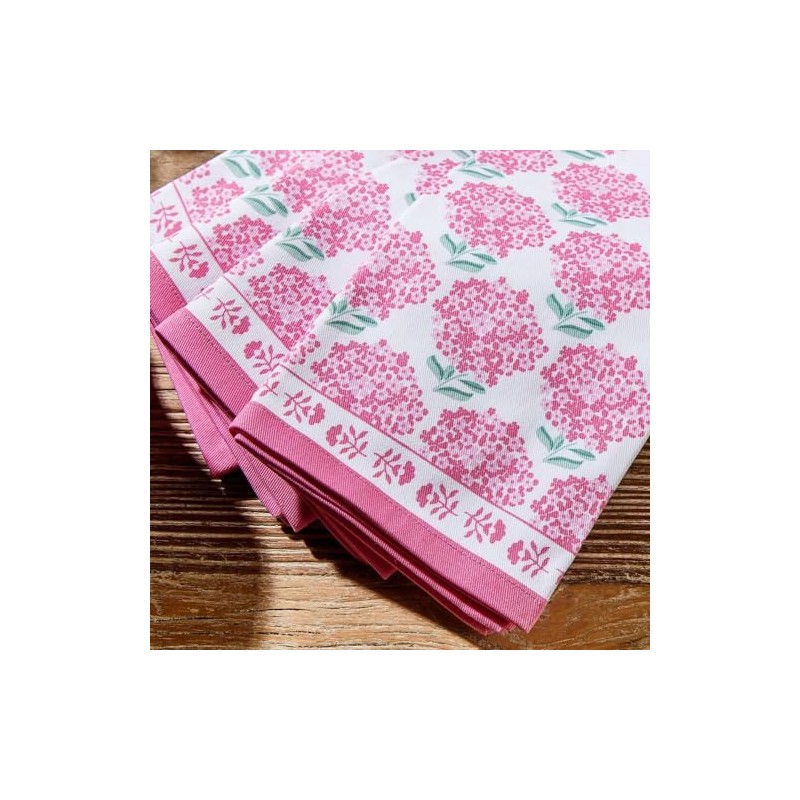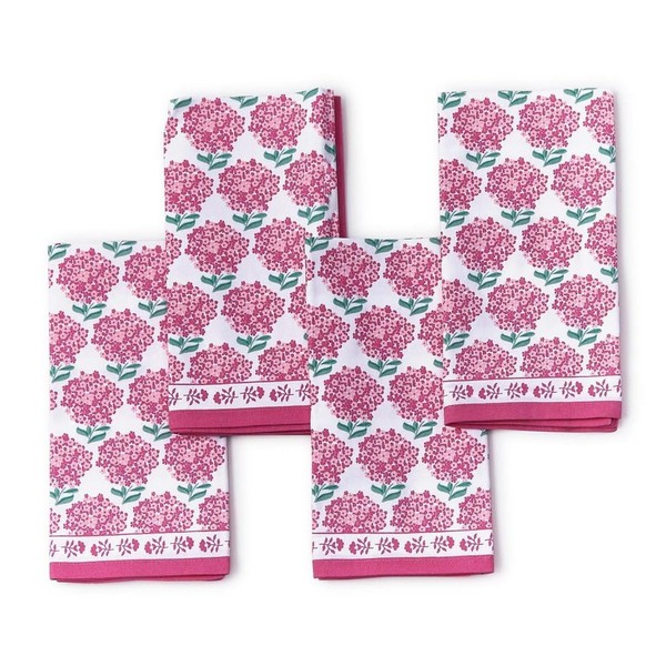 Two's Company Pink Hydrangea Cotton Cloth Napkins, 4-PC Washable Reusable Fabric Dinner Table Napkin