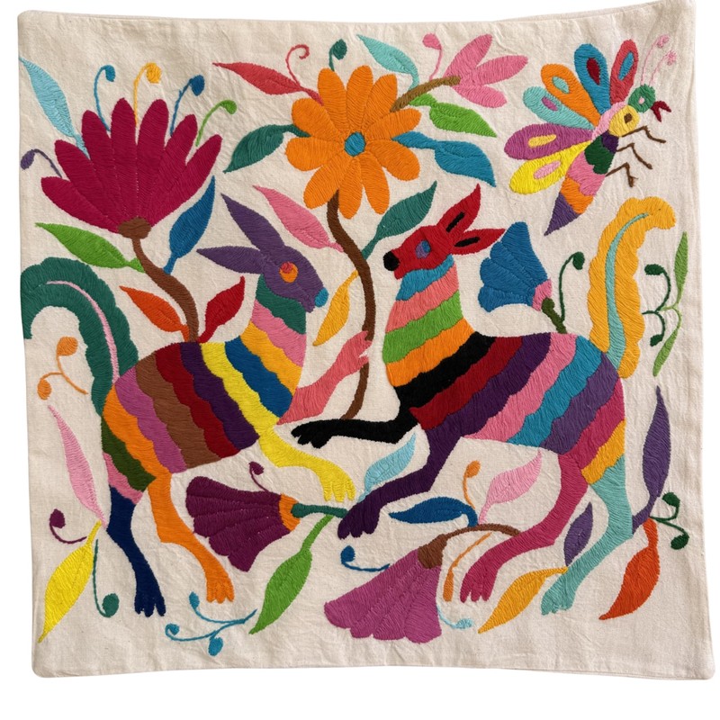 - El Tenango, un textil tradicional mexicano, es un bordado originario de la región Otomí del Estado de Hidalgo. A través de flores y animales fantásticos, las bordadoras y bordadores narran su vida en colores, la vida de su Pueblo. Cada funda de cojín es única, no encontrarás otra igual, ya que están 100% bordados a mano en comunidades especializadas