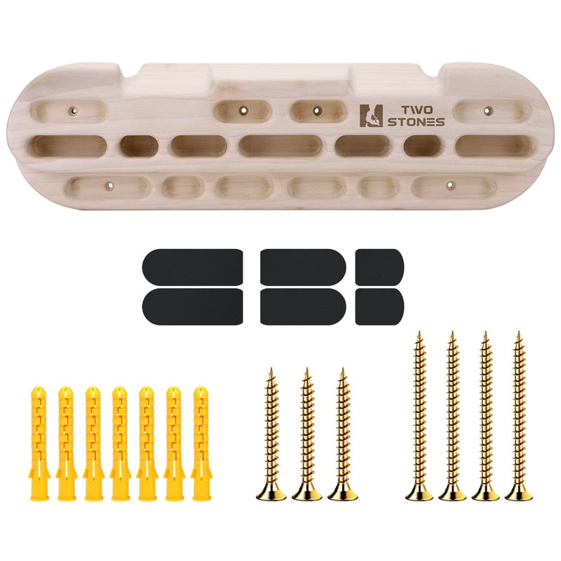 - [Easy to Install]: The rock climbing fingerboard is doorway and including mounting hardware as 7 screws (4 PCS of M4*70mm and 3 PCS of M4*50mm) and 7 PCS of expansion tubes; If installing on wall without studs, recommend using a backboard (not included) to mount the rock climbing hangboard to Exercise Anywhere