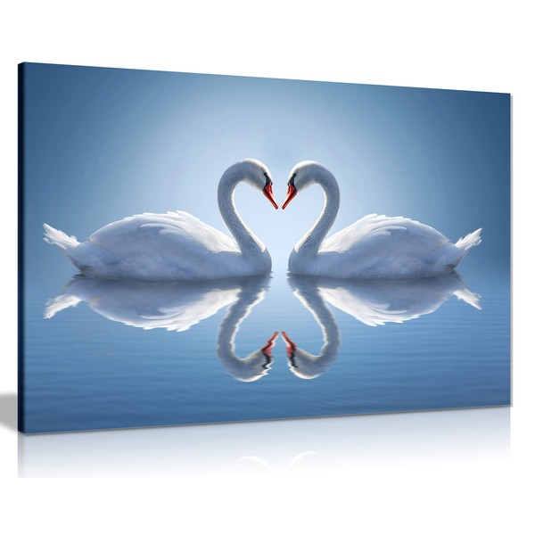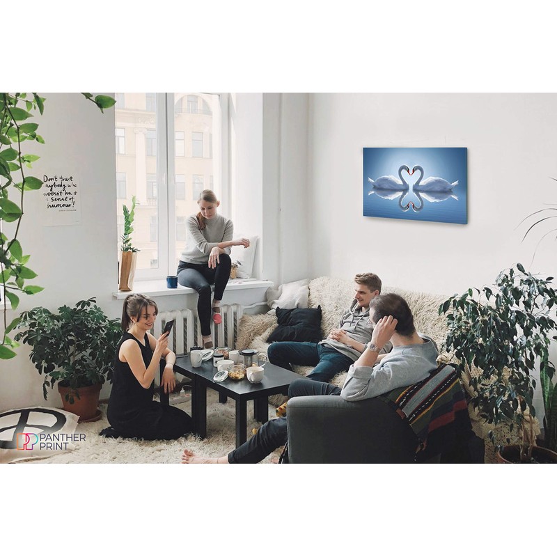 Panther Print, Canvas Wall Art, Framed Pictures for Bedroom, Blue Living Room Accessories, Two Swans Make Up a Heart Reflected on Water, Prints for Special Occasions (61x41cm)