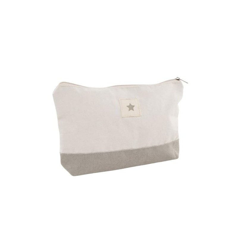 Two-Tone Cotton Toiletry Bag Large 30 x 6 x 18 cm with Star Patch, beige, Classic