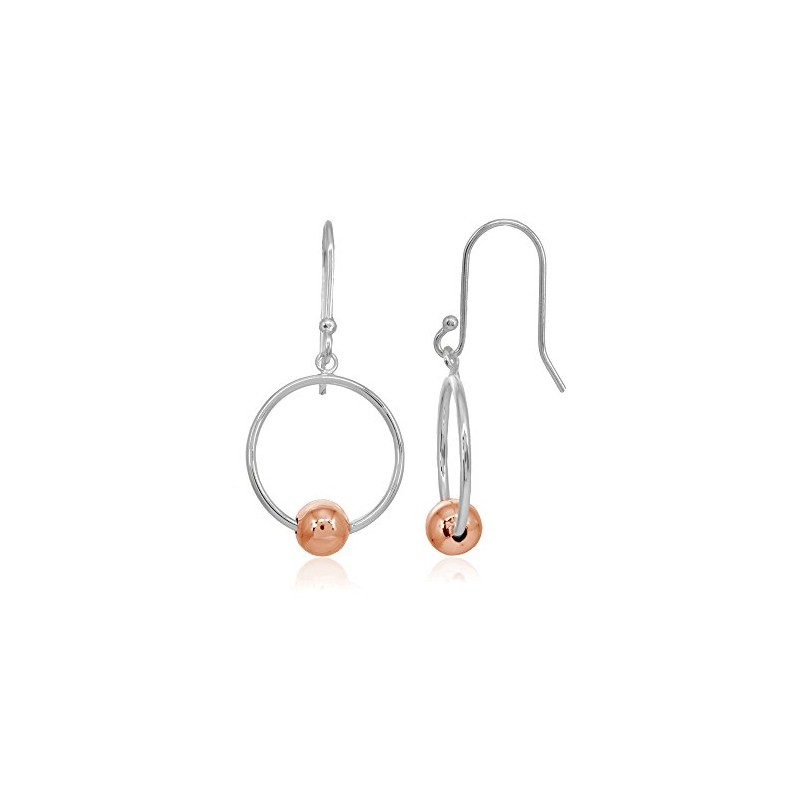 - These stunning earrings are perfect for both simple daytime use and luxurious evening wear. These dangling earrings feature beads stationed on a thin polished circle, creating a fun chic accessory for women. These earrings are secured by post with friction backs. These stud earrings are crafted of fine two-tone rose gold flashed sterling silver and are nickel & tarnish free.