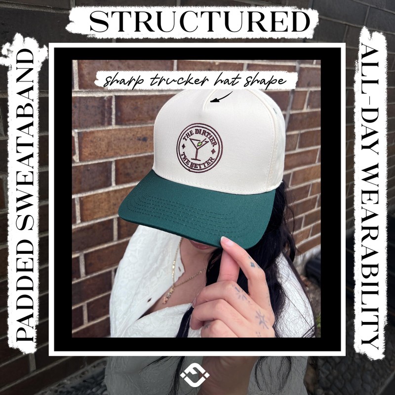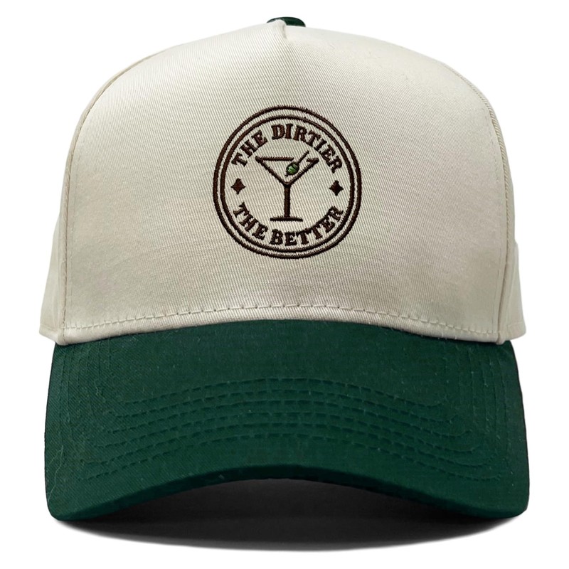 Funky Junque Vintage Green Hats: Embroidered Adjustable Snapback Dad Hat Trucker Baseball Cap Unisex - The Dirtier The Better - Green/Beige