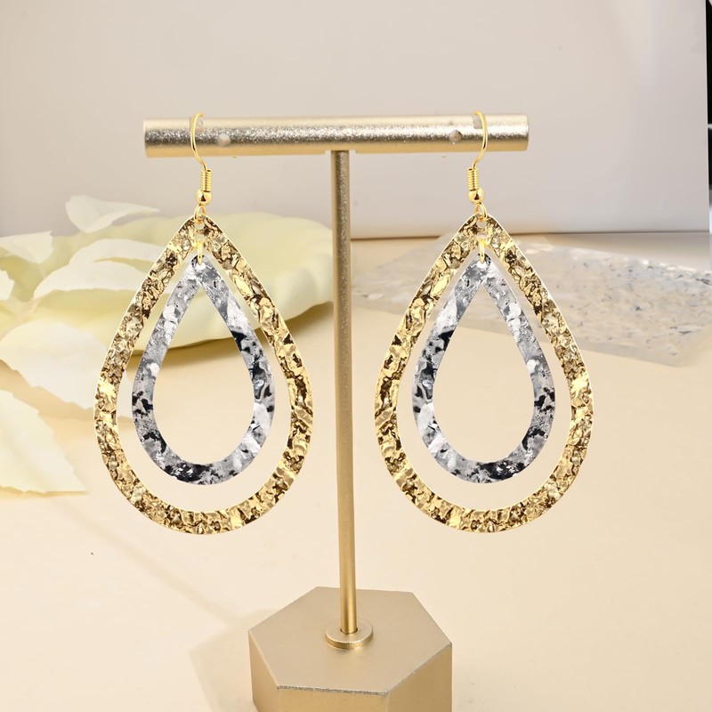 - ELEGANT DESIGN: Two-toned teardrop earrings featuring textured gold outer rim and silver inner rim, creating a stunning double-layered boho statement piece