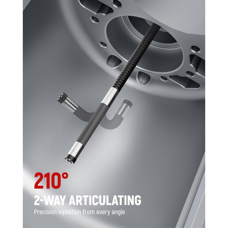 - 210° Articulation for Ultimate Control: This articulating borescope features a 210° dual-direction bending camera probe , easily controlled by a precision wheel. Navigate tight engine compartments, HVAC systems, plumbing, or machinery with ease—no need to reposition the probe. Ideal for professionals who demand flexibility and accuracy in hard-to-reach inspections