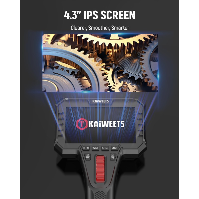 - Vivid 1080P IPS Display: View inspections in crisp detail on a 4.3-inch IPS screen, offering wide viewing angles and vibrant colors. The second-generation CMOS sensor delivers smooth, high-frame video at 1080P resolution. Whether you're detecting rust, cracks, or debris, every detail appears clear and true-to-life—no Wi-Fi or app needed