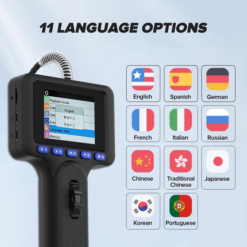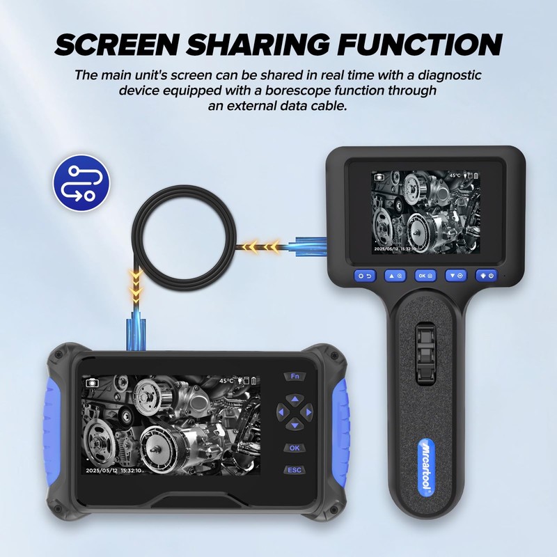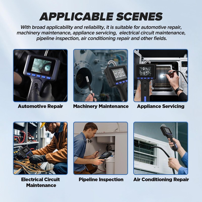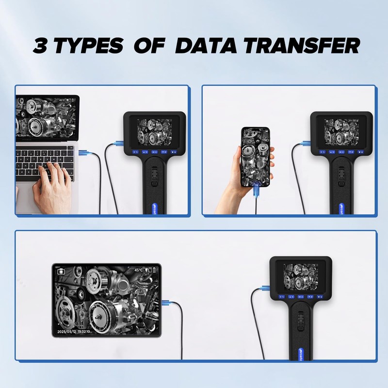 - [3-LEVEL LED & DATA SHARING] Features adjustable 3-stage LED lighting and real-time audio/video recording, ensuring clear and stable inspection imaging in complex environments. Supports real-time HD video transmission to professional diagnostic equipment via external data cable for efficient collaborative operations.