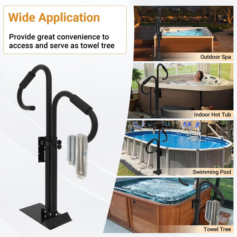 Neorexon Two-Way Hot Tub Handrails, 38"-58" Adjustable Height SPA Handrail w/360 Swivel Option, Hot Tub Railing to Get in and Out, 600LBS SPA Side Handrail w/Slide Under Mount Base for Indoor&Outdoor