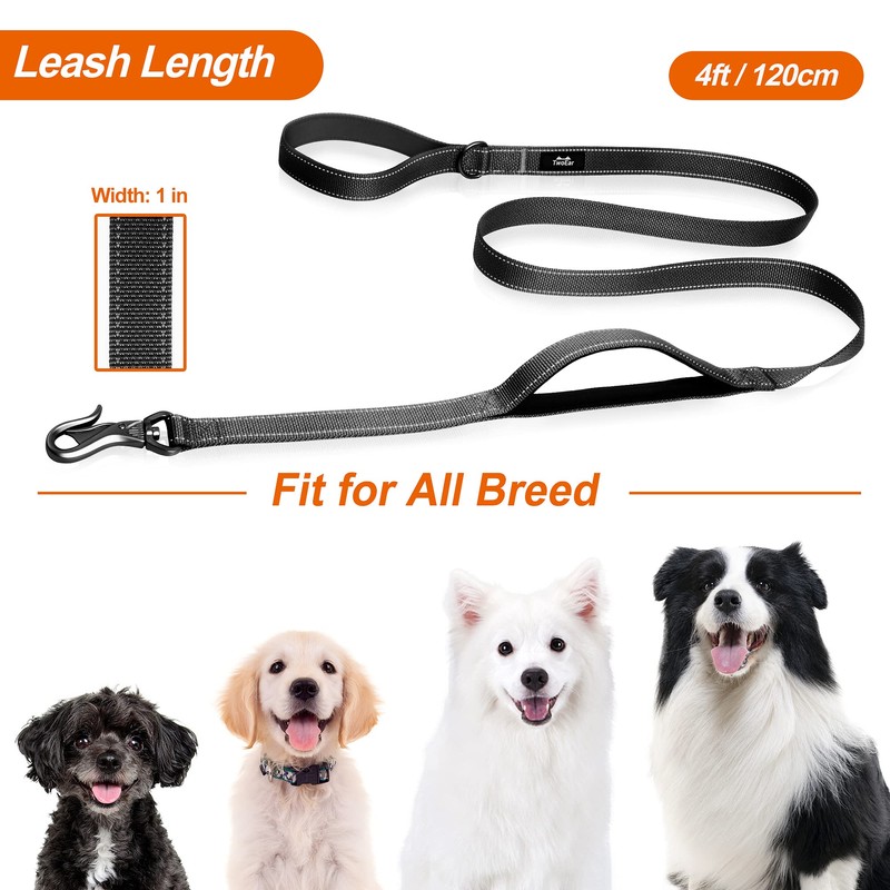 TwoEar 4FT 1IN Strong Black Dog Leash with 2 Padded Handles, Traffic Handle E...