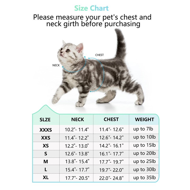We have 35 sizes to choose, fit for small dogs, cats and puppies. Please measure your pet’s chest and neck circumference before purchasing.