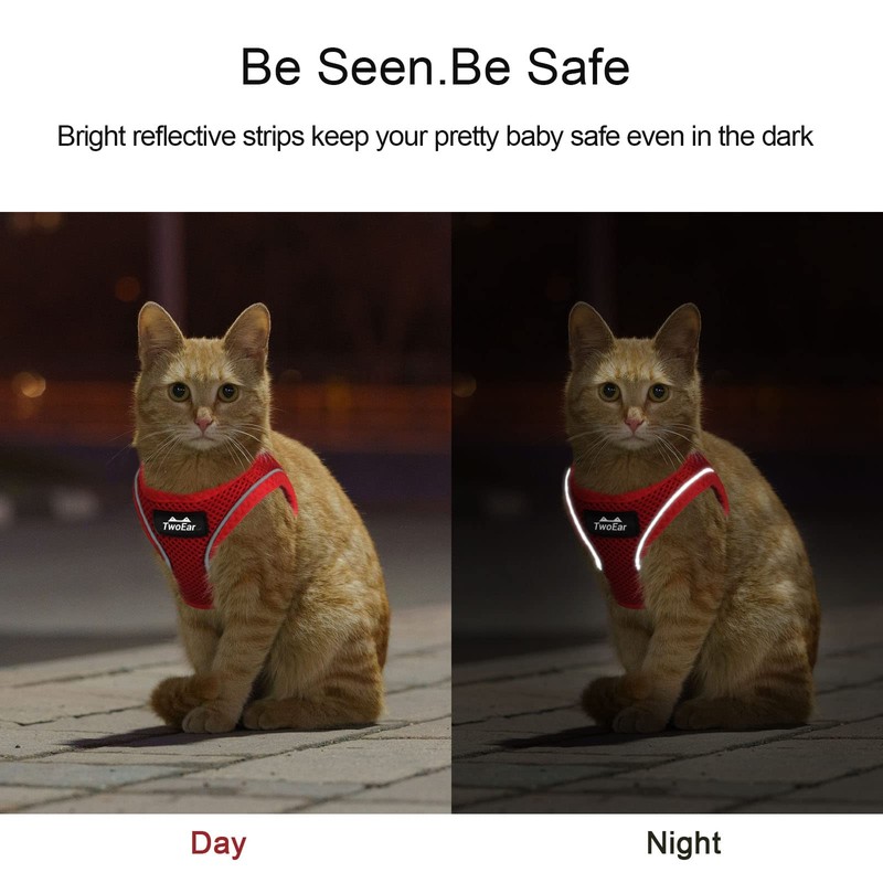 TwoEar Cat Harness Escape Proof, Soft Dog Vest Harness Adjustable, Breathable Mesh Step-in Puppy Walking Jacket Reflective Easy Control for Extral Small Pets for Outdoor Walking(XXS, Red)