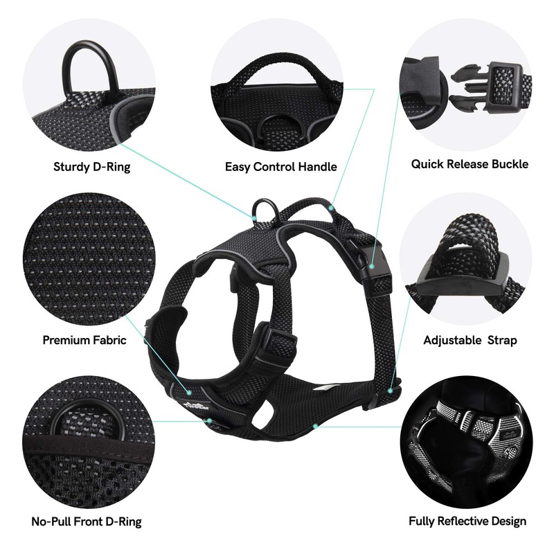 • 【Fully Reflective Design】Strong reflective points all over the strap and fabric in the harness, ensure the maximum safety of dog when walking in the night. Easy to see your dog and make your dog visible at night or in the dark.