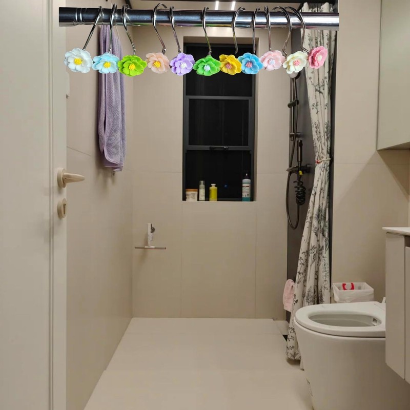 - Package Contents: Set of 12 shower curtain hooks featuring colorful flower designs and anti-rust alloy construction