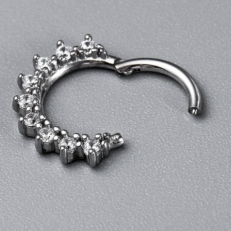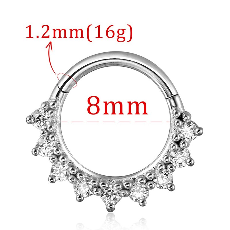 Twolobes 1PCS 16G/8mm Silver Surgical Stainless Steel Segment Nose Rings CZ,Cartilage Clicker Hoop Earrings for Rook, Daith, Tragus, Hypoallergenic for men and women