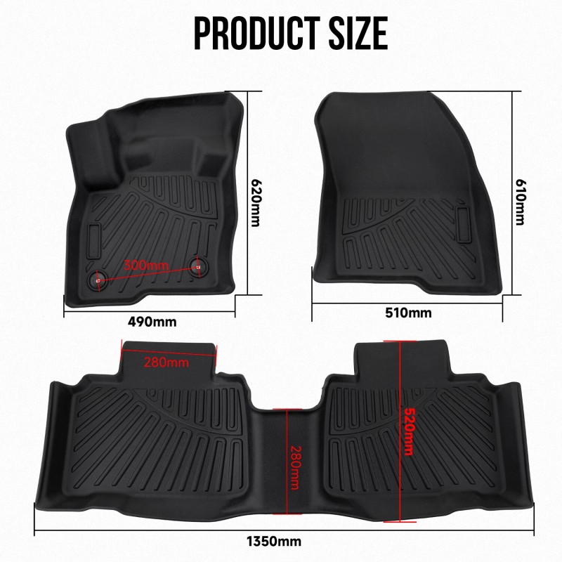 TWOM Floor Mats for 2015-2025 Ford Edge Front & Rear All Weather TPE 3D Liners 3pcs