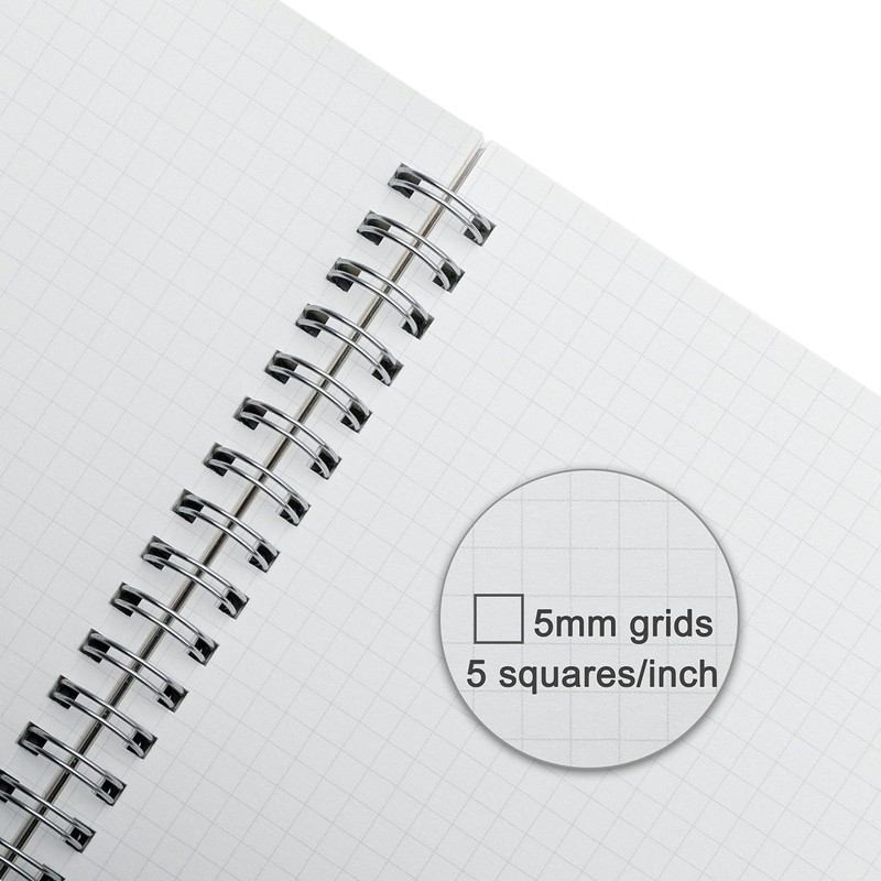The cover and back are made of transparent matte PP material, which is waterproof, dirt-resistant, and scratch-resistant, protecting the inner pages from damage. Speaking of the pages, they're made of premium Cream white 100gsm Woodfree paper, with a 5mm grid pattern printed on them. The thick paper doesn't bleed through, making it suitable for double-sided writing. Each notebook has 70 sheets or 140 pages, making it more durable and cost-effective.