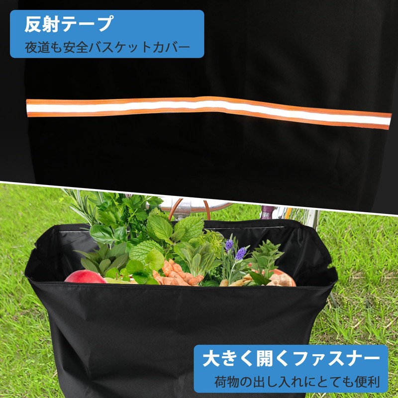 TwoPone Bicycle Basket Cover, Waterproof, Front / Cage Cover, Basket Cover, Thick, Durable, Large, 500D, Adjustable Size, Large Capacity, Reflective Tape, Double Opening, For Rain, Commutes, Bicycles,