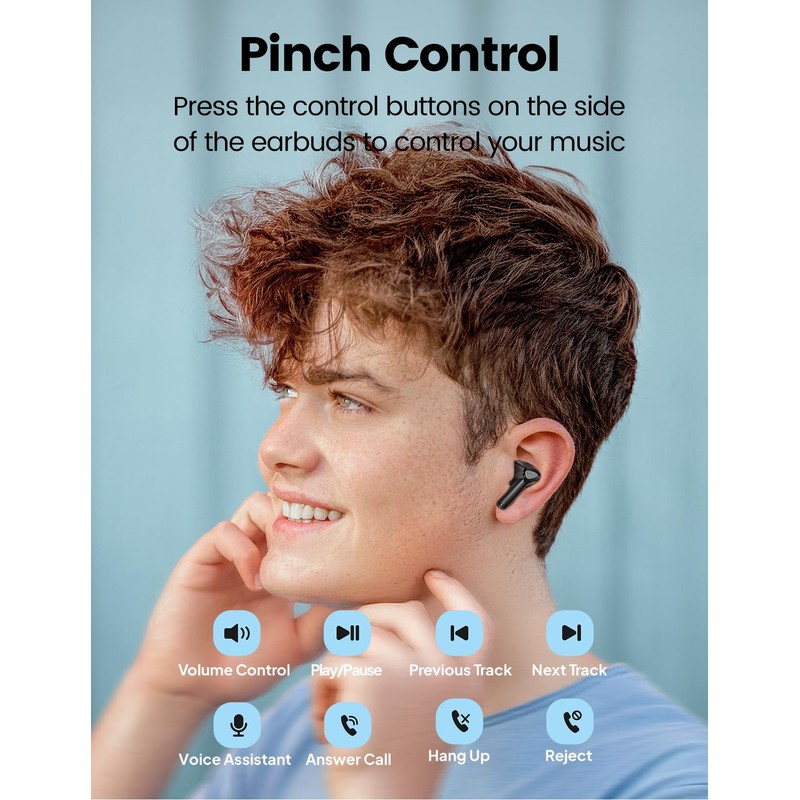 - 50H Playback in Turns & Pinch Control: The XWIT T801 bluetooth headphones can be used for 5 hours at a time, and the 500mah charging case can charge the ear buds 4 times. By using them in turns, you can enjoy a total of 50 hours of music time; There is a force sensor on the side of the wireless earbuds. Just tap the pinch button on the side of the wireless headphones and you can play or pause music, adjust the volume, skip tracks, activate the voice assistant, and answer or end calls