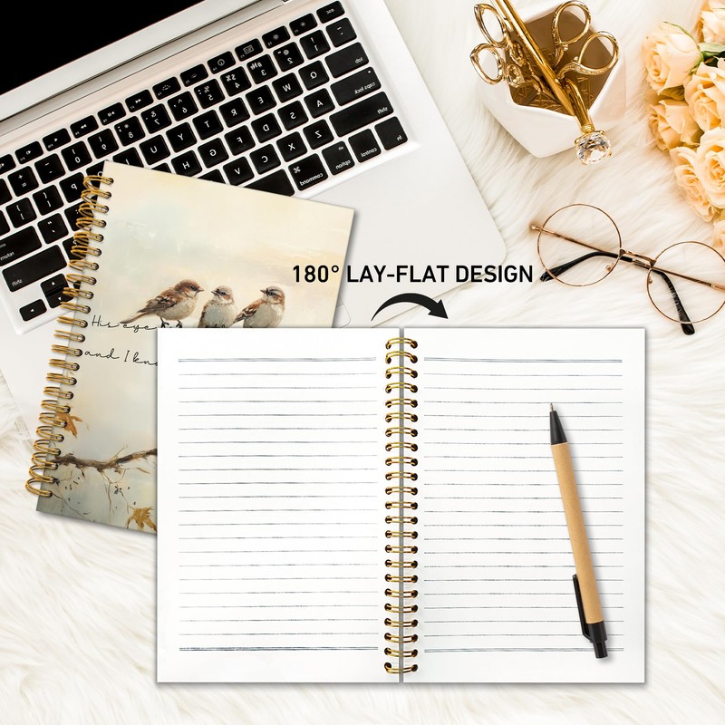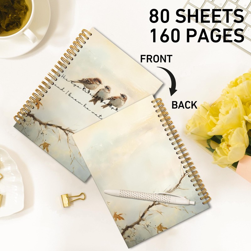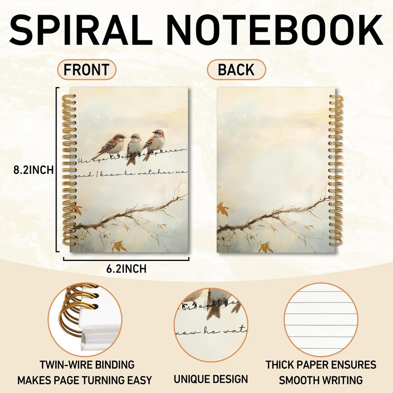 TWRVI His Eye Is On The Sparrow Christian Spiral Notebook, Bible Verse Notebook Journal for Church School Office Supplies, Religious Prayer Scripture Journaling Notebooks 5.5"x8.3" 164 Pages