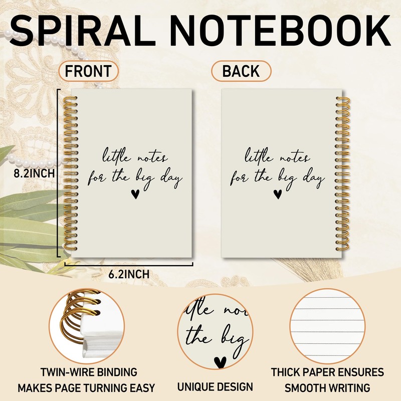 TWRVI Wedding Spiral Notebook, Bridal Shower Wedding Gifts Notebook Journal for Office Supplies, Just Married Gifts, Little Notes for The Big Day Journaling Notebooks 5.5"X8.3" 164 Pages Light Green