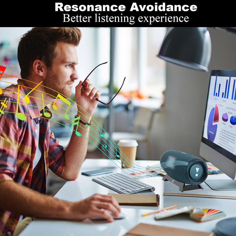 - 【Reasonable Design】The dimension of the speaker stand are 6.49'' * 3.22'' * 0.98'', small and compact, perfectly supports the JBL Charge 5 speaker. There are four silicone anti-slip beads on the bottom to prevent the stand from sliding and to reduce vibrations between the stand and the table, resulting in a better listening experience.