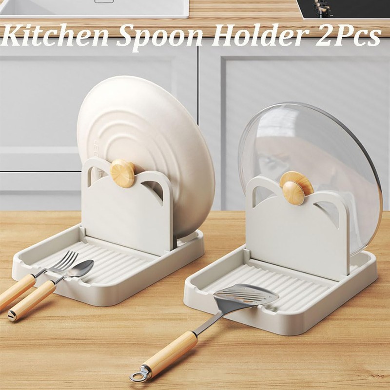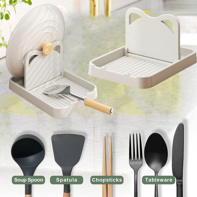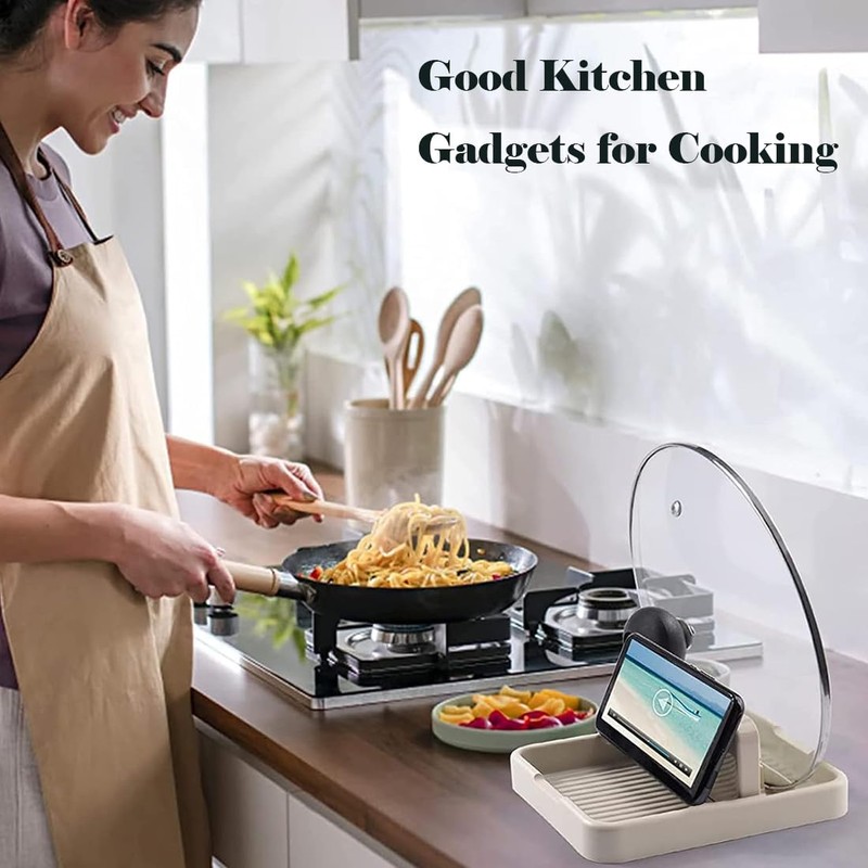 - 【Good Kitchen Gadgets for Cooking】Still be annoyed by the clutter on your counter top when cooking? This spoon and lid rest can be a good solution to your worries; pot lids and spoons can be placed at hand on the holder without leaving any stains or mess on the countertop. The bottom groove design allows the water and oil on the kitchen utensils to drip smoothly on the spoon holder.