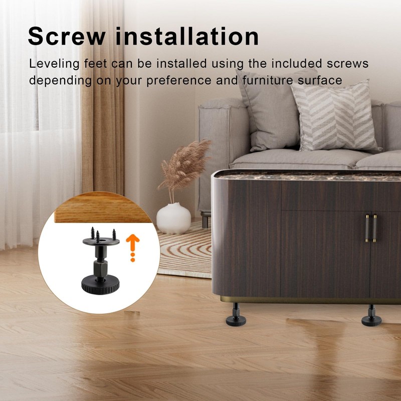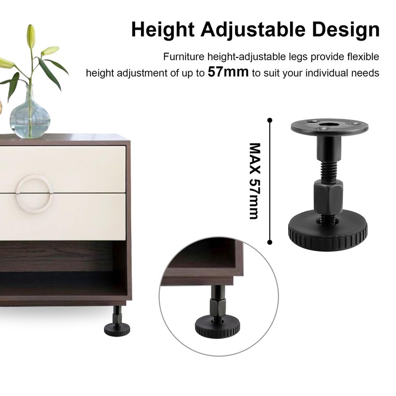 - High compatibility: the black and elegant appearance of height-adjustable feet for furniture is perfect for all types of furniture. It is simple and practical, beautiful and reliable and can be perfectly combined with sofas, bedside tables, cupboards, coffee tables and other furniture.
