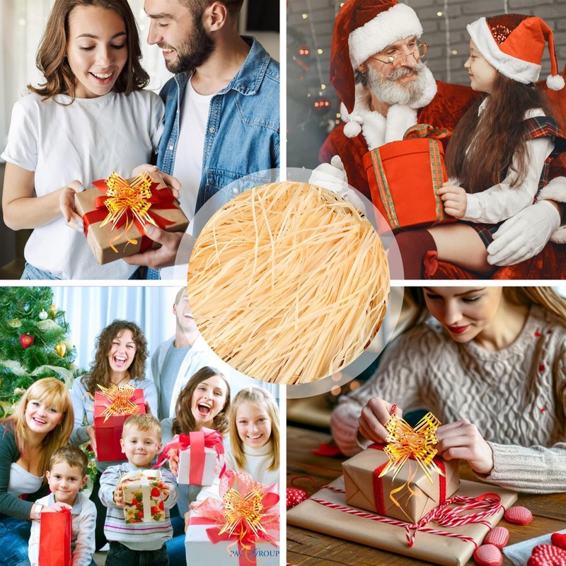 - Applicable Occasions: TXXATX 550g raffia hamper shredded filling is perfect for various occasions, such as weddings, birthday parties, anniversaries, Christmas, Valentine's Day, Easter, Mother's Day, Father's Day, and more. Before use, gently rub the champagne hamper packaging to make it fluffier for a better decorative effect, creating a warm and romantic atmosphere for your events.
