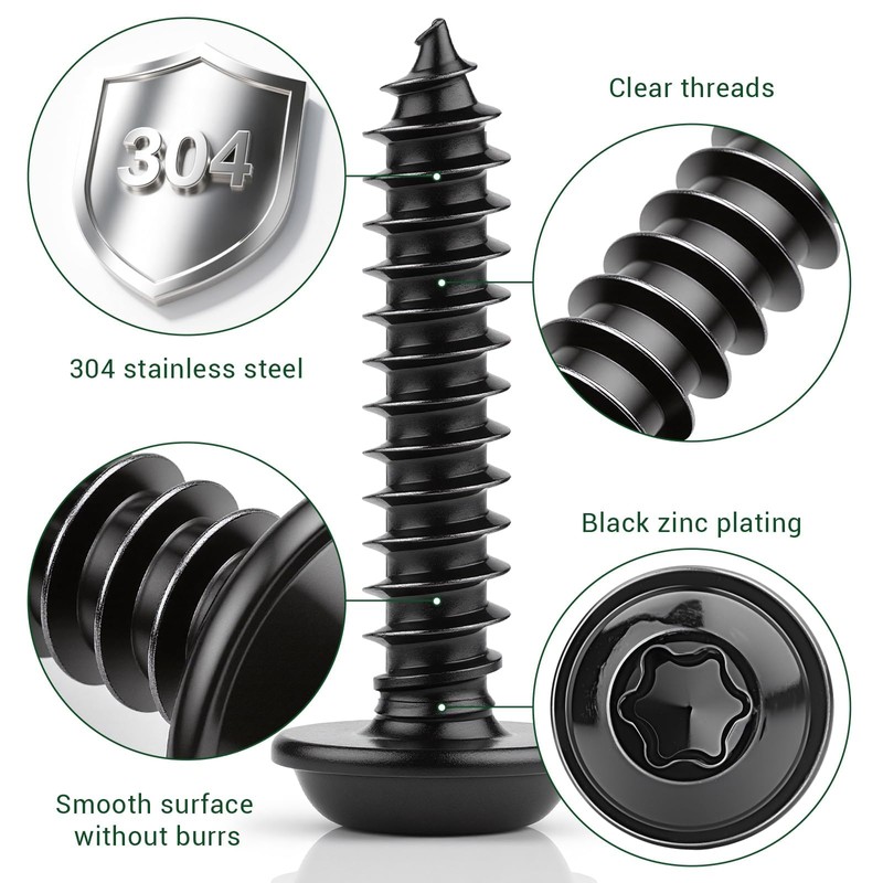- Versatile application: TXXATX wood screws plate head are suitable for indoor and outdoor fixings, e.g. on cabinets, furniture, doors and windows, fences, toys, in the garden or in the garage. TXXATX Torx screws stainless steel are also used in automotive construction and repairs (e.g. for attaching mudguards or wheel arches), in household appliances, electronic devices as well as in the assembly of acoustic plates.