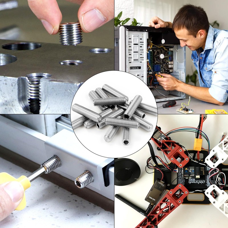 - Wide Application TXXATX grub screws set stainless steel are commonly used for fixing rotating components such as bearings, gears, pulleys and clutches. M5 grub screws can also be used for positioning motor shafts in electronic devices, hard drive motors, drone propellers, optical components or for adjusting hinges or sliding rails in furniture.