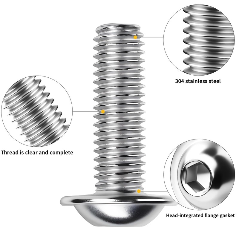 • Hex Drive The head of the TXXATX M5 stainless steel screws features an embedded hex socket design that allows concentrated and precise torque transmission and reduces the risk of tool slipping. Compared to conventional cross or slotted screws, TXXATX M5 stainless steel screws lens head can be tightened faster and firmly.