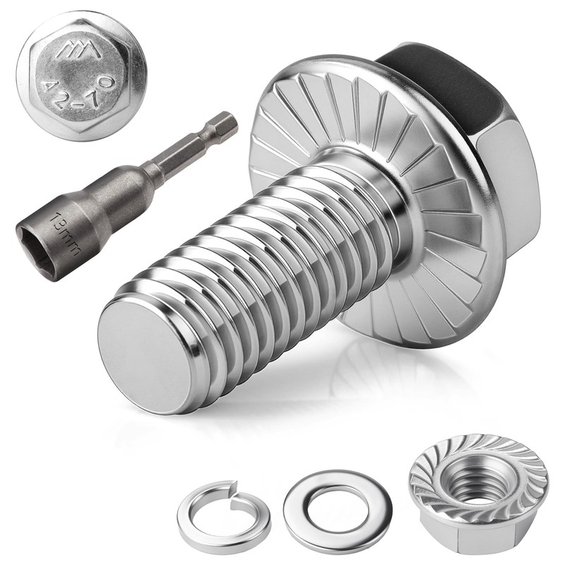 - Practical design: TXXATX m8 screws are equipped with a serrated flange that increases the contact surface and effectively prevents loosening. In combination with the spring latches, loosening due to vibration, shock or thermal expansion is prevented. The outer hex design allows for use with a socket and reduces slipping, ensuring high tightening torque and a stable connection.