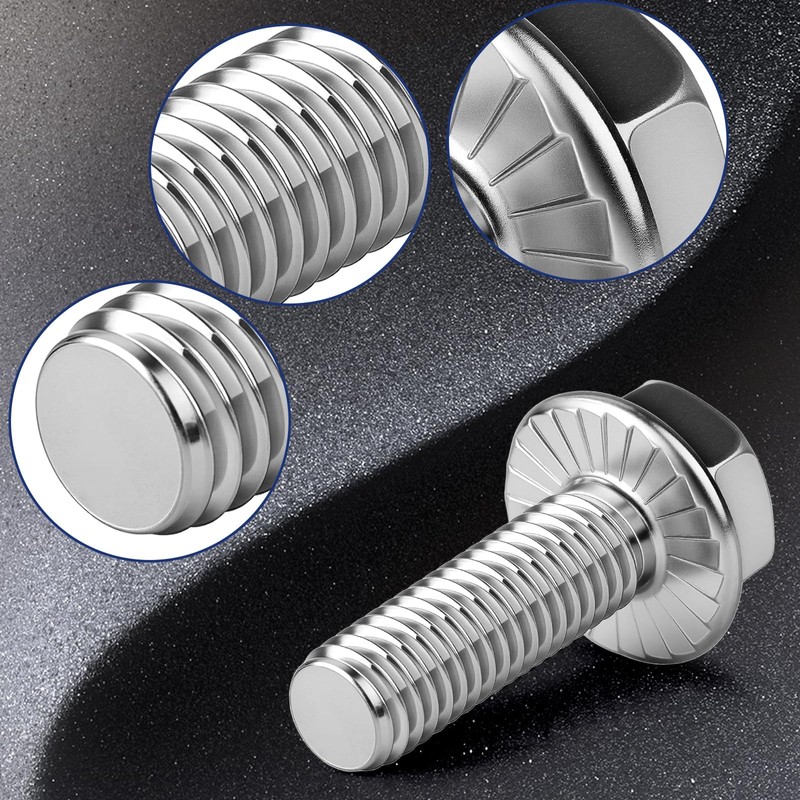 - Reliable attachment: TXXATX hexagon screws m8 is smooth, the thread is deep and evenly, so that the load is distributed stably and loosening is effectively prevented. The flange nuts have a locking device that creates elastic and plastic deformation when tightened to increase the locking force and ensure a stable connection.