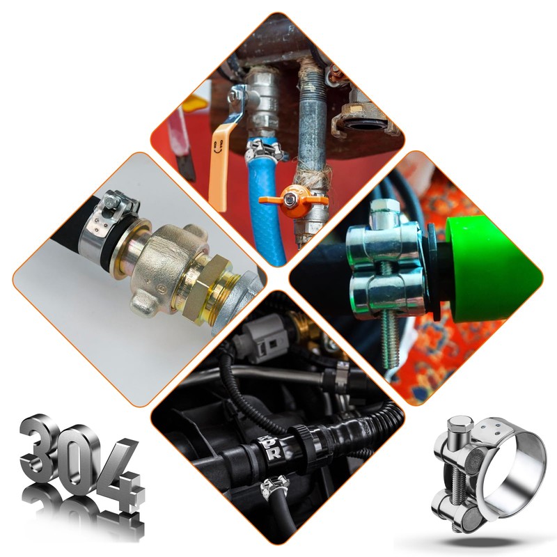 Industrial use: Clamp oil and air hoses on machinery (e.g., compressors, hydraulic systems), or fasten automotive exhaust and cooling pipes for reliable sealing.