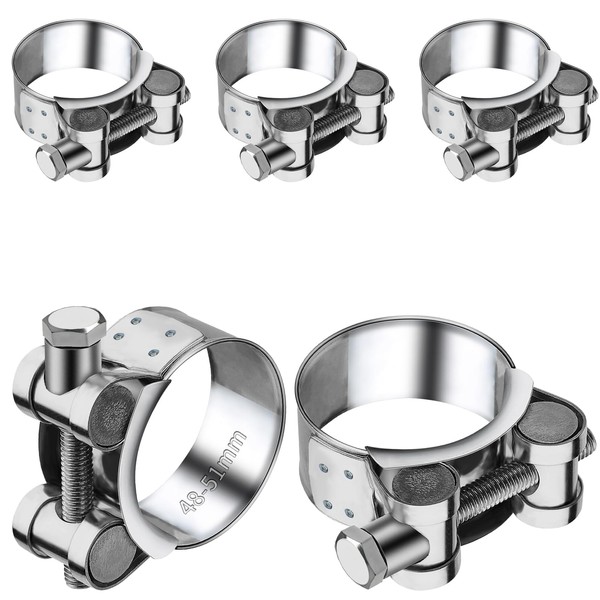 TXXATX T Bolt Hose Clamp 48-51 mm Hose Clip 5 Pieces Exhaust Clamp 304 Stainless Pipe Clamps Band Width 22 mm Adjustable Clips for Water Pipe Gas Pipe Automotive Tube Attachment