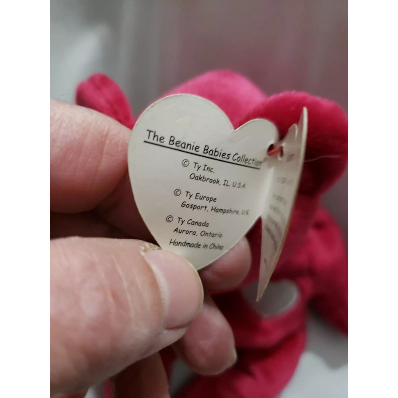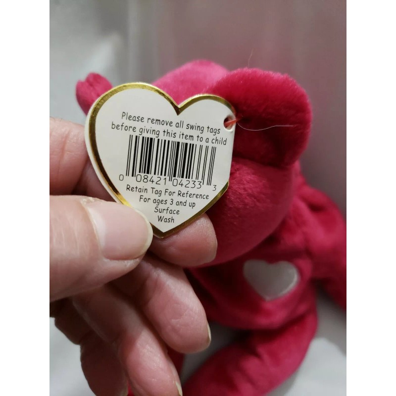TY Beanie Baby - VALENTINA the Red Fushia Bear mwt 2-14-1998, PE PELLETS