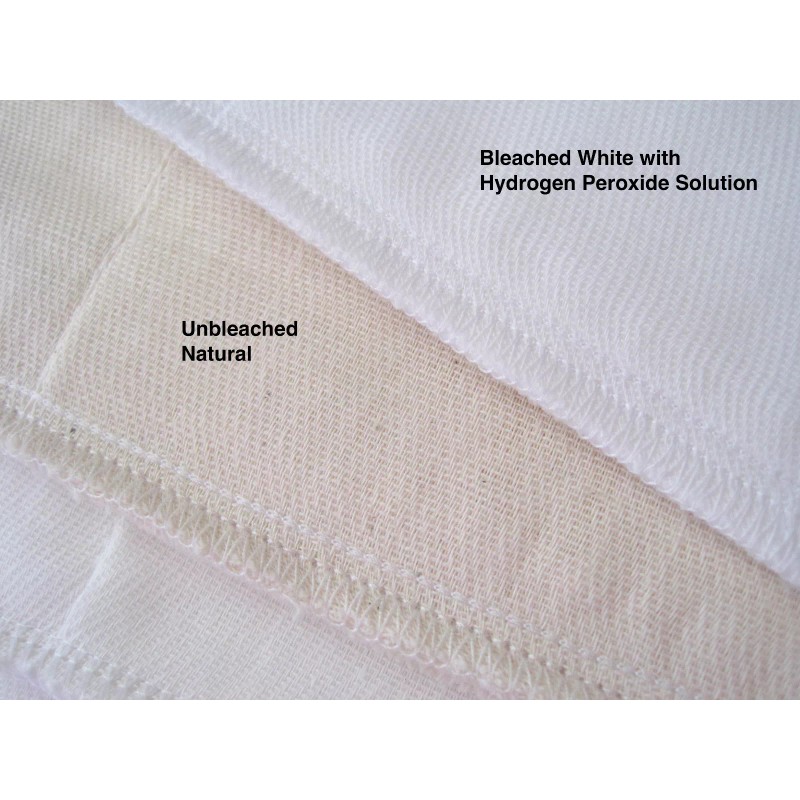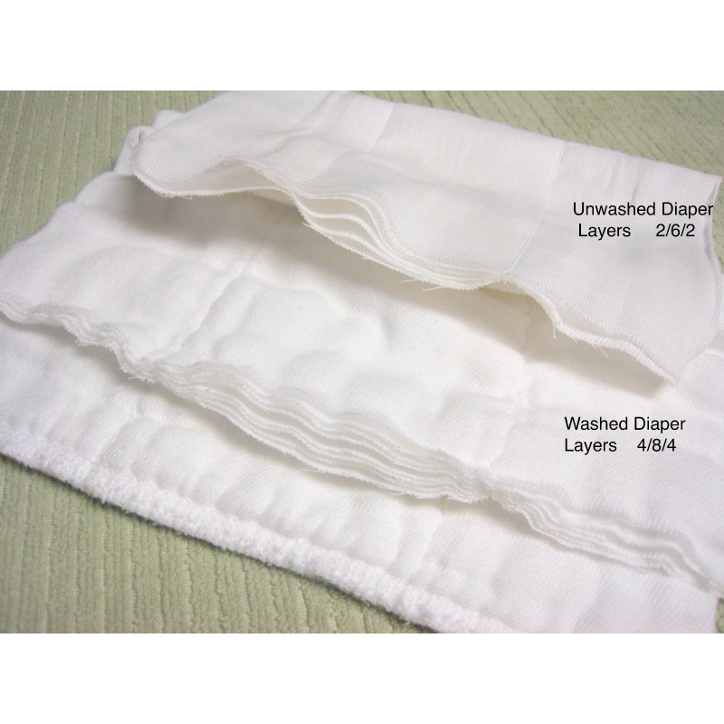 White diapers need to be washed in hot water at least once before use. They will reach optimum absorbency after washing in hot water 3-5 times. Natural unbleached diapers need to be washed in hot water at least 5 times before they can be rid of the natural oil in the cotton fiber; and will reach optimum absorbency after 8 washes.