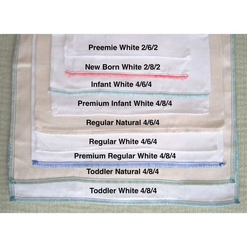 TY Diapers 100% Cotton Chinese DSQ prefold diapers PREMIUM "FITTED" REGULAR (LARGE) 4/8/4