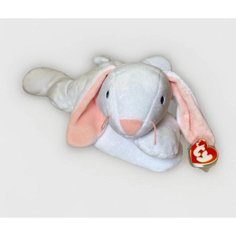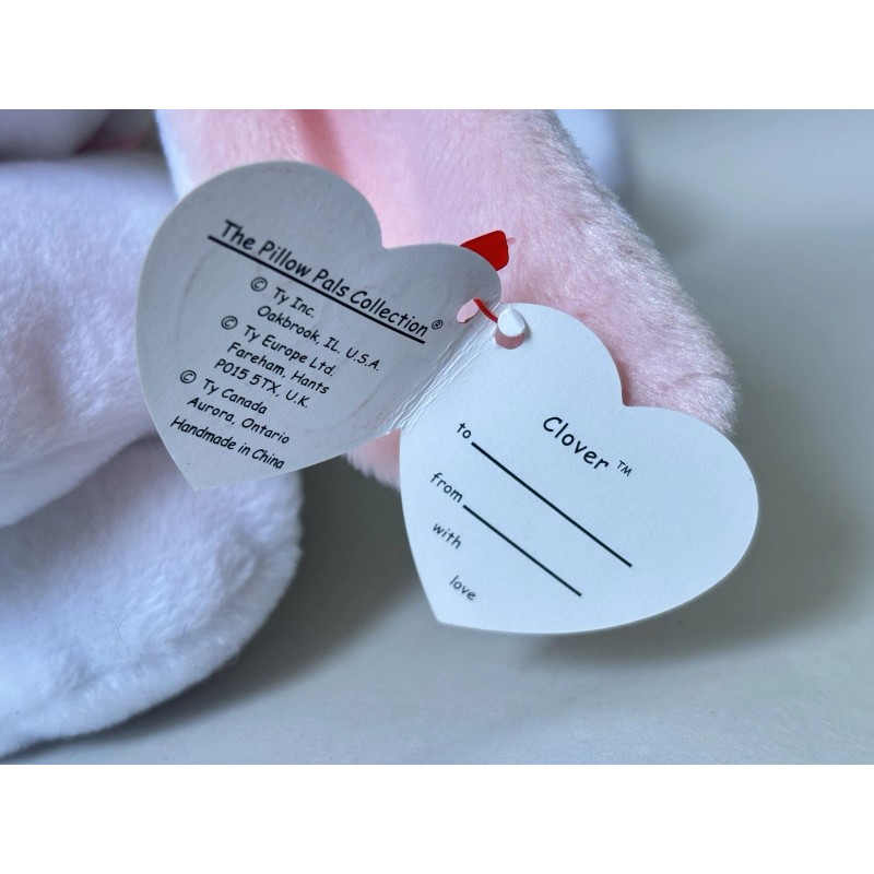 The product is a TY Pillow Pals plush beanie from 1997 featuring Clover the White Bunny. This collectible plush toy is from the Ty brand and is new with its original tag. Perfect for fans of plush toys and collectors of vintage TY products, this adorable bunny is a charming addition to any collection.