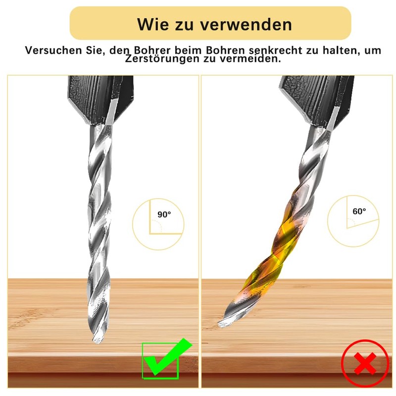 - Fast Chip Removal The spiral edge of the countersunk wood drill bit set can quickly remove the chips from the outside of the hole, preventing the accumulation of dirt residue and thus clogging.