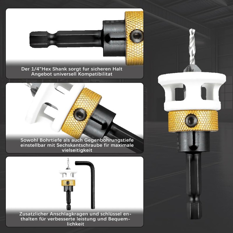 - Depth adjustable: drill countersink with depth stop, will not penetrate, accurate control of the drilling depth, improve the efficiency of processing and ensure the quality of machining.