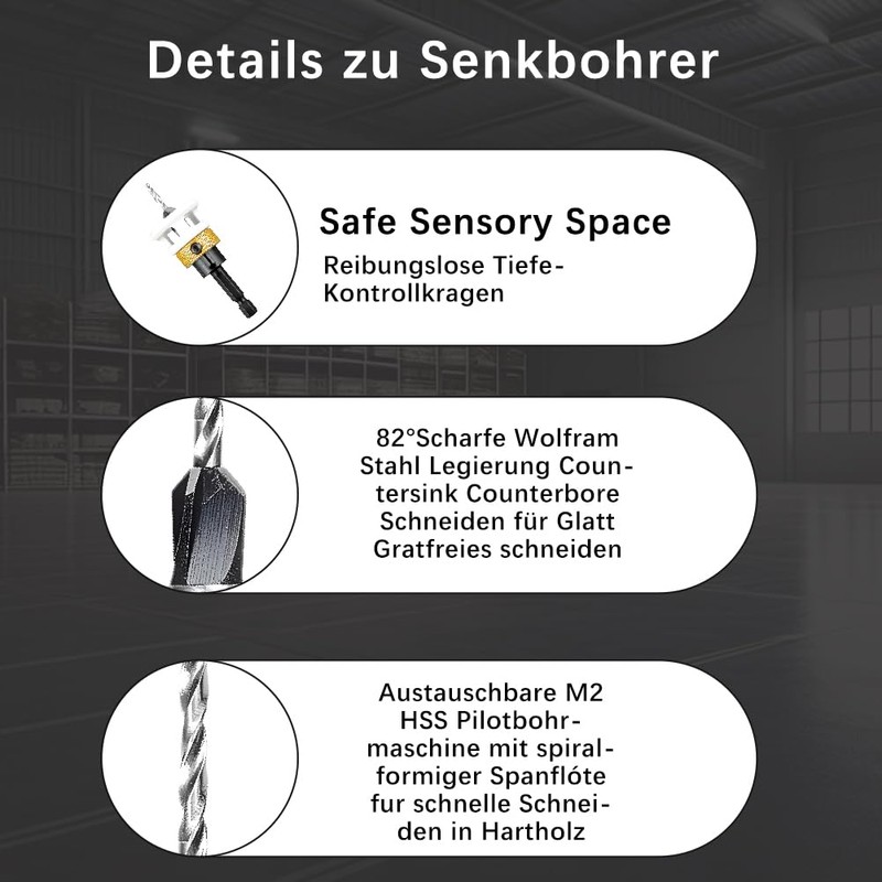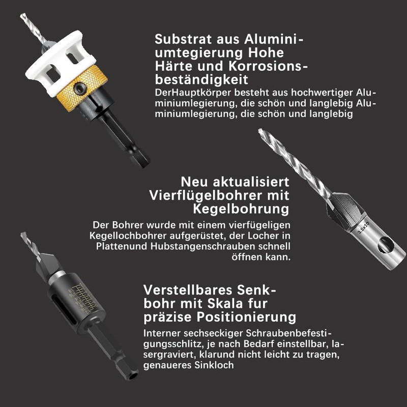 - MATERIAL The drill countersinks are made of alloy for sharp drilling and sturdy construction for longer durability.