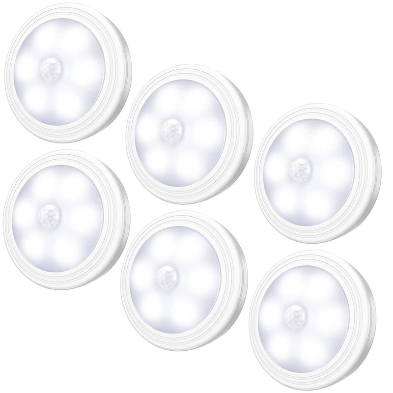 TYC Luces LED con Sensor de Movimiento, 6 PCS automático Luz Nocturna LED, Lámpara Nocturna para Vestíbulo, Sótano, Garaje, Baño, Armario, Cocina, Escaleras, Luz de Pared con Almohadillas Adhesivas