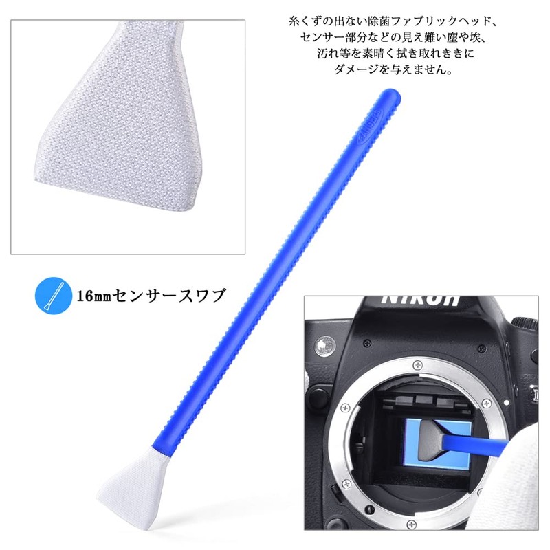 With lint-free sterile fabric head, easily cleans up invisible dust, dust and dirt from APS-C frame sensors without damaging them. Knurled edge stick design increases the stability of the handheld and prevents accidental slipping when cleaning the sensor.