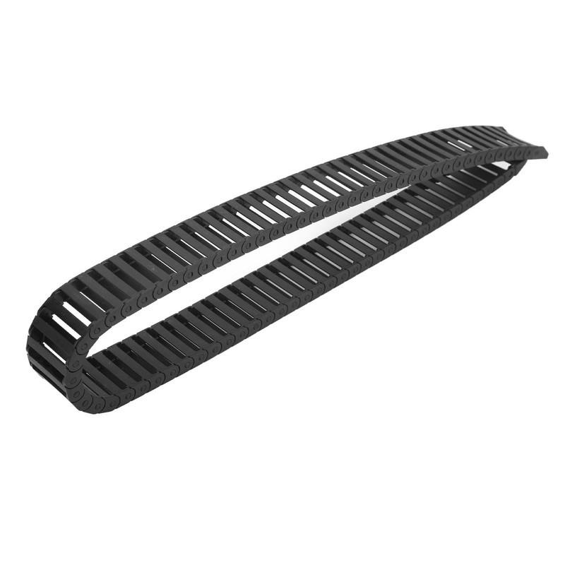 3. Widely used in CNC machine tools, electronic equipment, fire extinguishing machines, stone machines, glass machines, door and window machines, injection moulding machines, robots, overweight transport equipment, automated warehouses, etc. Package list: 1 x nylon drag chain. Note: 1. Manual measurement is required if the surface is heavily worn or not marked with specifications.2. When the movable end is bent into a "U" shape, the longer part lies flat, but the entire chain cannot be completely flat due to the preload.