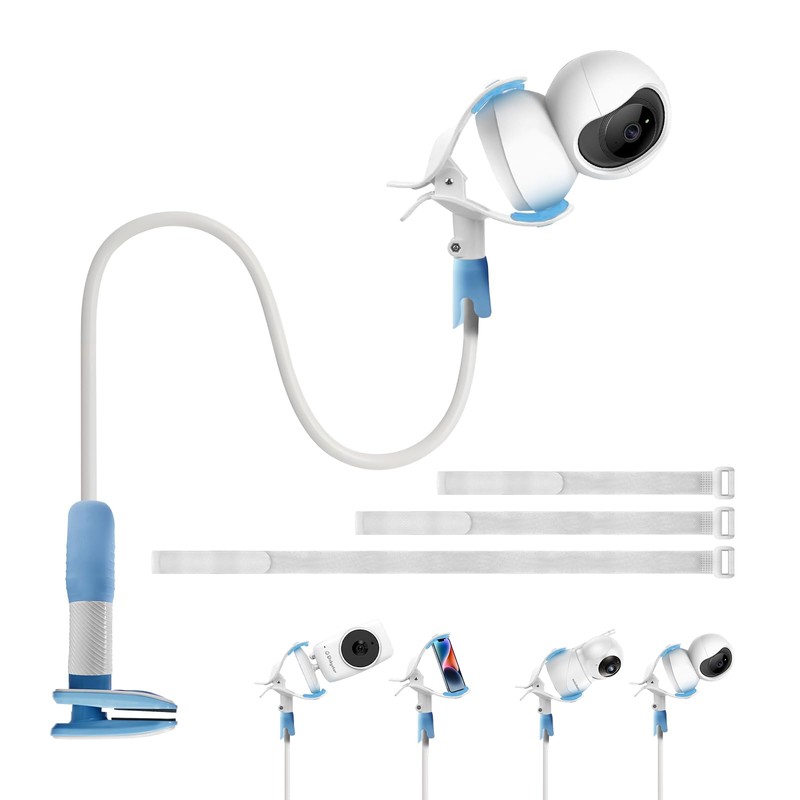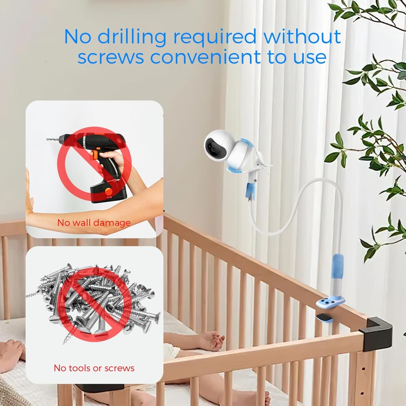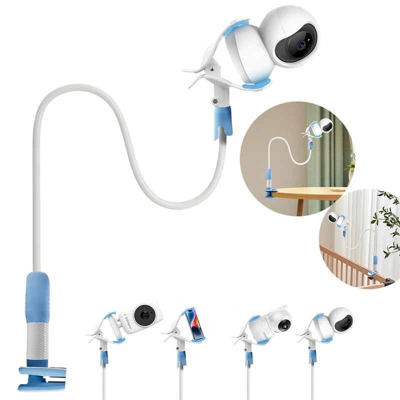 - 【Easy to use the Baby Monitor Mount】- The baby camera shelf has a strong clamp that holds securely to most surfaces, and is easy to attach on furniture in the room. Bend and rotate it to change the baby monitor position as required for best results.