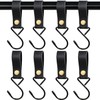 TYFYH Leather S Hooks 8 Pieces S Hooks with Leather Loop, Camping Hooks, Metal S-shaped Hooks for Hanging, Multifunctional Hooks, Stroller Hooks for Coat, Towel, Kitchen, Bathroom