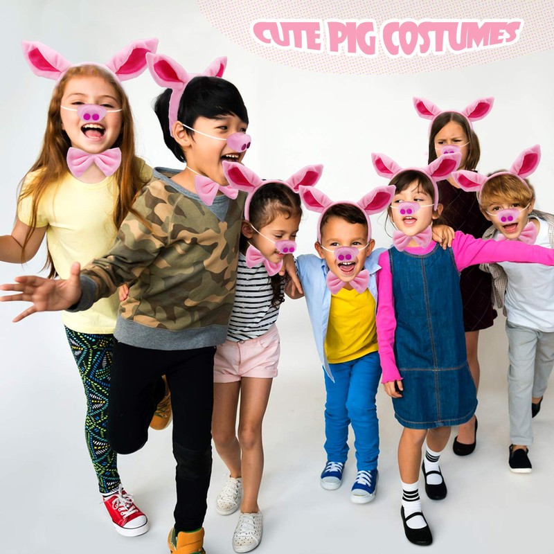- 🐷Oink! Oink! Who Needs a Pig? Complete your Piggy themed party or Halloween costume with our Piggy Accessory Set! The set includes pig ears headband, pig nose, pig tail and a bow tie. Now that you have this kit, complete your own piggy costume by wearing all pink clothing.