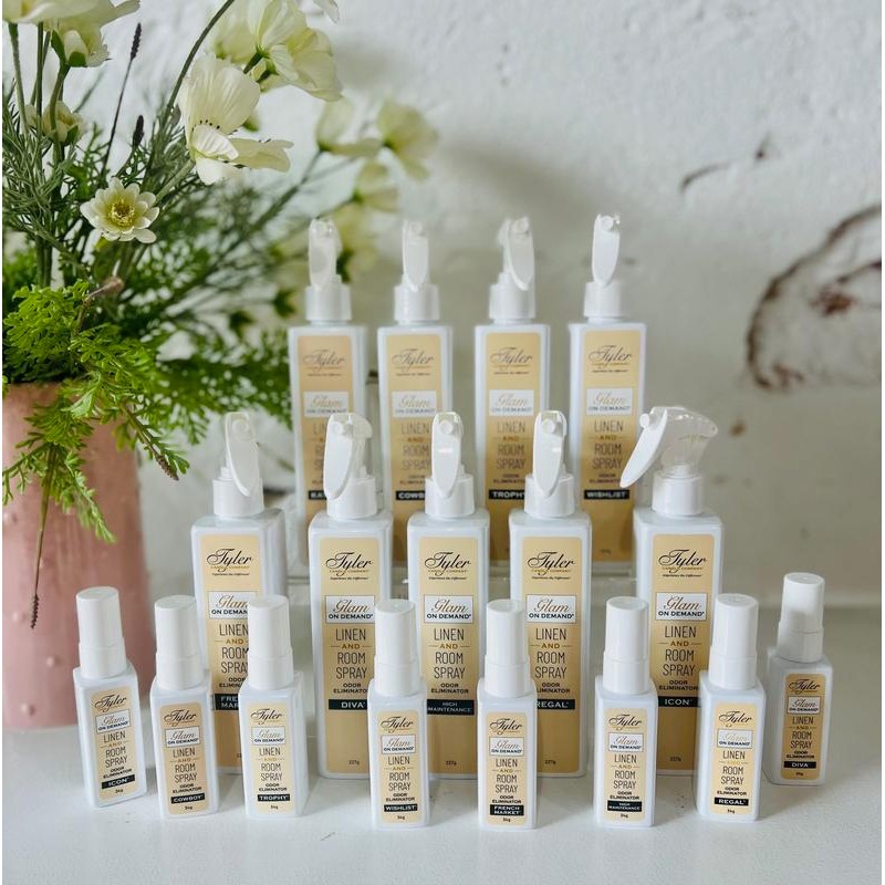 Transform your living space with the Glam on Demand Linen & Room Spray by Tyler Candle Co. This versatile product serves as both a linen refresher and odor eliminator, offering a quick and easy way to rejuvenate any room.